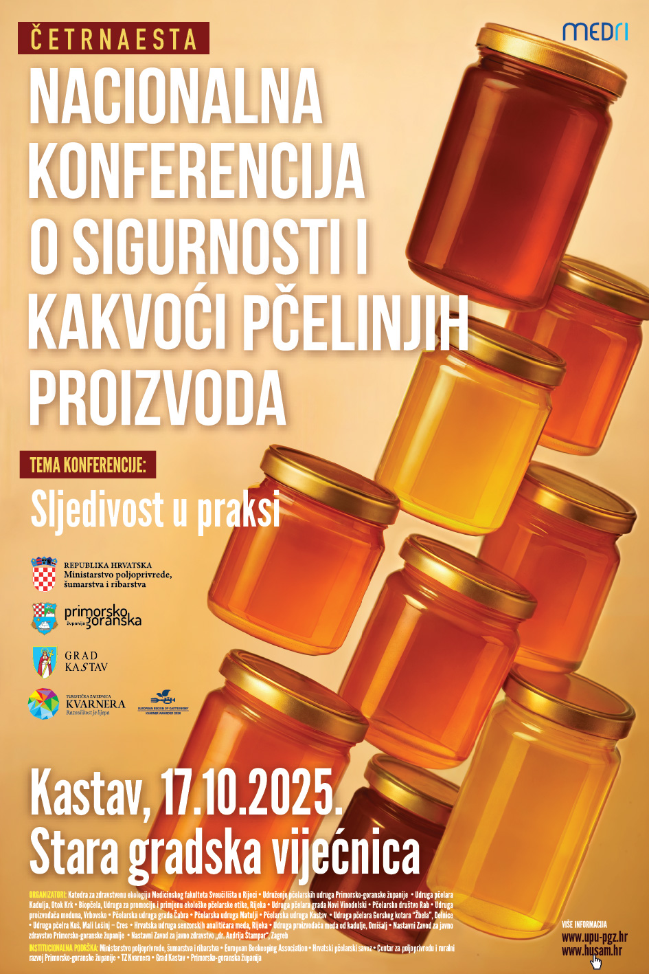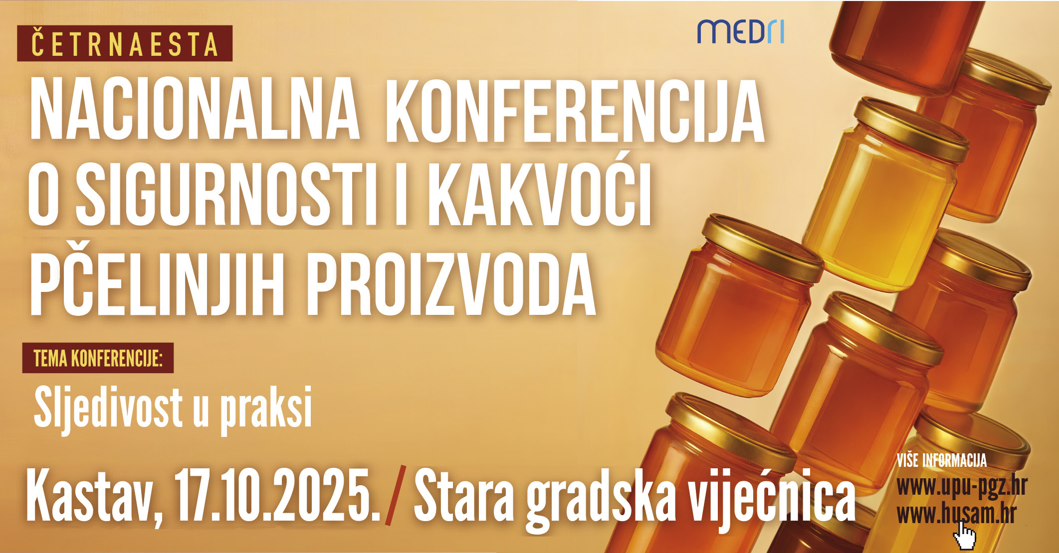 ČETRNAESTO nacionalno okupljanje proizvođačke, stručne i znanstvene zajednice na temu sigurnosti i kakvoće pčelinjih proizvoda. Uz sudjelovanje uglednih gostiju iz inozemstva, ove godine se održava na temu “Sljedivost u praksi”, 17. listopada 2025. godine u Staroj Gradskoj vijećnici u Kastvu (Trg Lokvina 3, 51215, Kastav). Već je napomenuto kako je konferencija postala tradicionalni skup, jedinstven po tome što se na jednom mjestu sastaju predstavnici primarne pčelarske proizvodnje i pčelarske znanosti.
