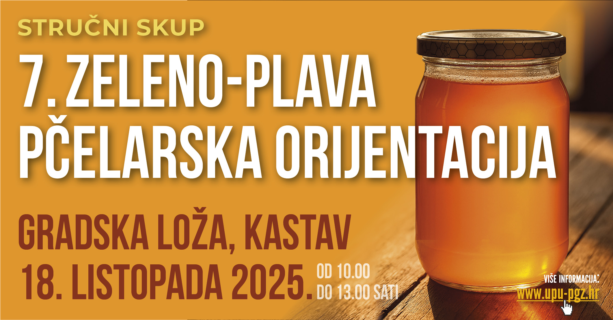 HUSAM je sastavni dio organizacijskog tima manifestacije “7. Zeleno-plava pčelarska orijentacija – Kad se susretnu zelena i plava pčelarska Hrvatska”. Održava se u prekrasnom gradu Kastvu 18. listopada 2025. godine. Program počinje u 10:00 sati, a u njemu će se proizvođačka i stručna zajednica staviti u funkciju servisa građana koji se ponekad zovu i potrošači. Ova manifestacija posvećena je promociji kulture trošenja najboljih medova, a to hrvatski pčelari mogu ponuditi i osigurati. Glavni cilj je upoznati građane s medenom sličnošću primorske i kontinentalne Hrvatske ali i sa najčešćim oblicima patvorenja meda. Sudjelovanje je slobodno građanstvo i sve sudionike!